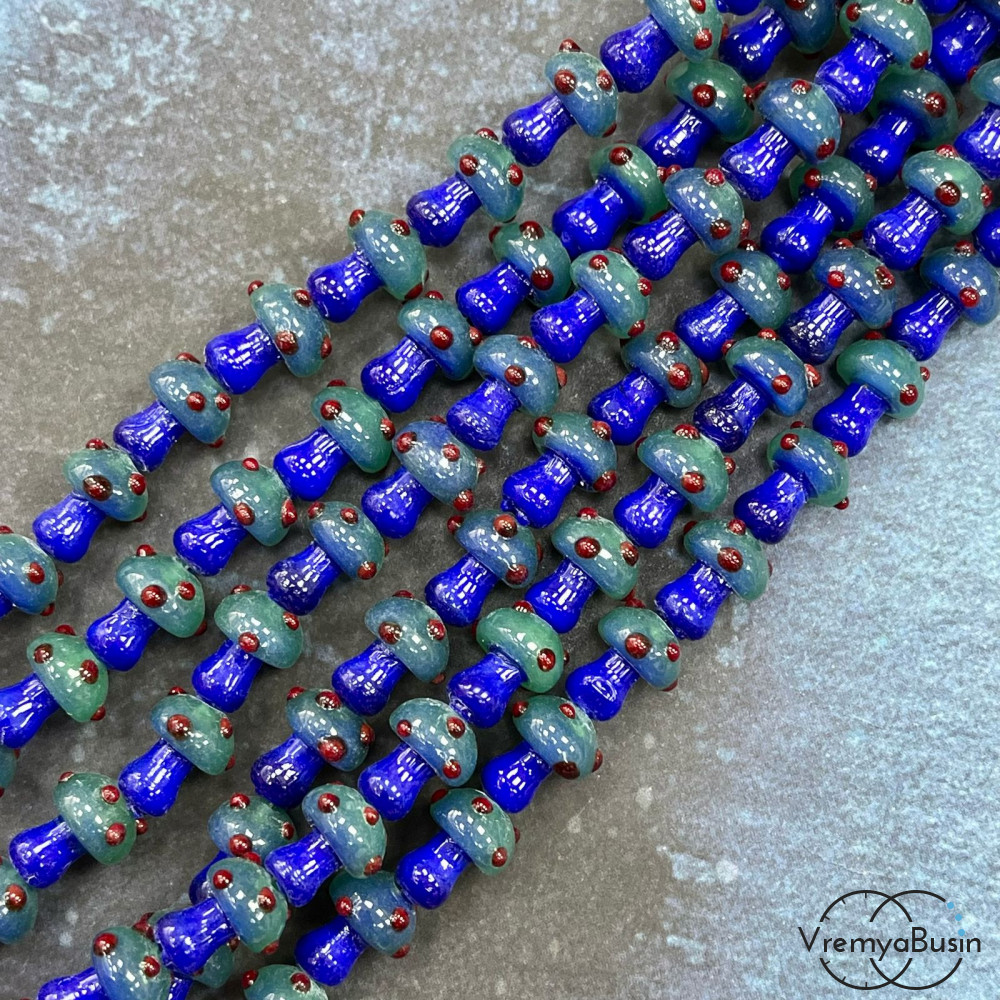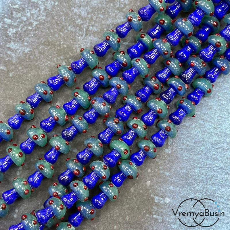 • Бусины из стекла "Грибок", 10х14 мм (1/2 нити, ок. 12 шт.)