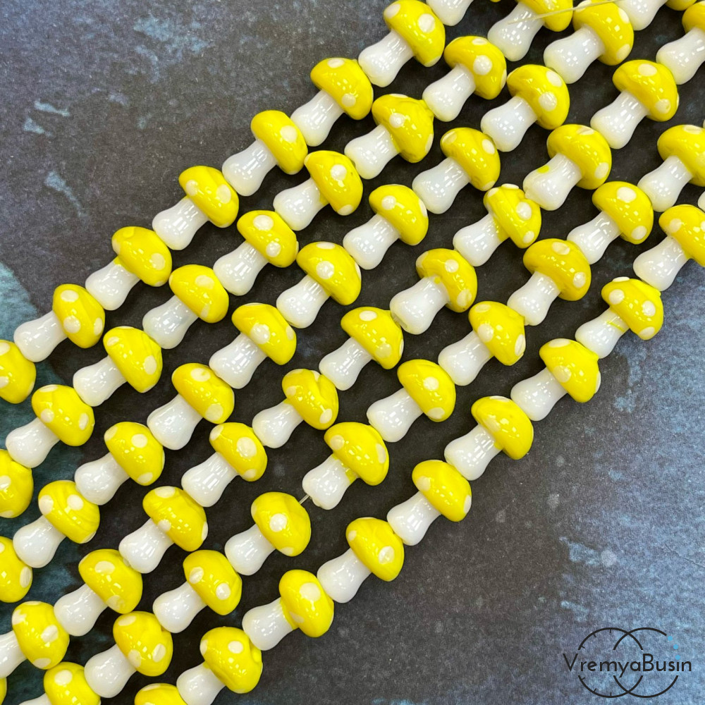 • Бусины из стекла "Грибок", 10х14 мм (1/2 нити, ок. 12 шт.)