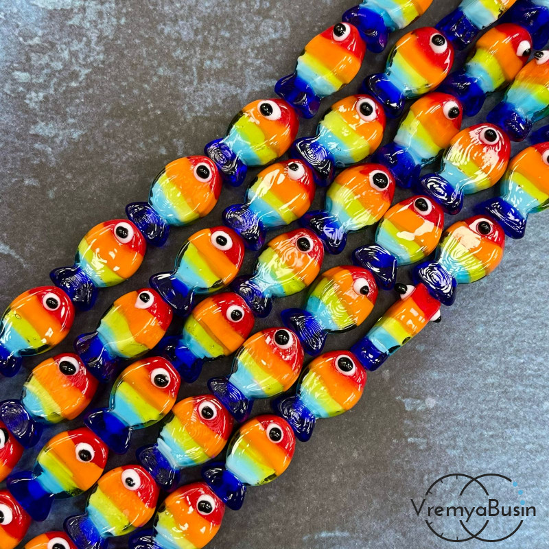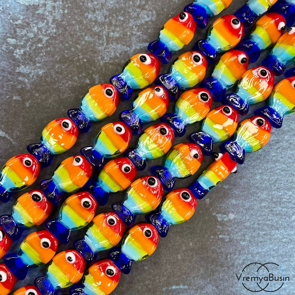 Бусины из стекла лэмпворк, рыбка 13х20х6 мм(1/2 нити, ок. 10 шт.)