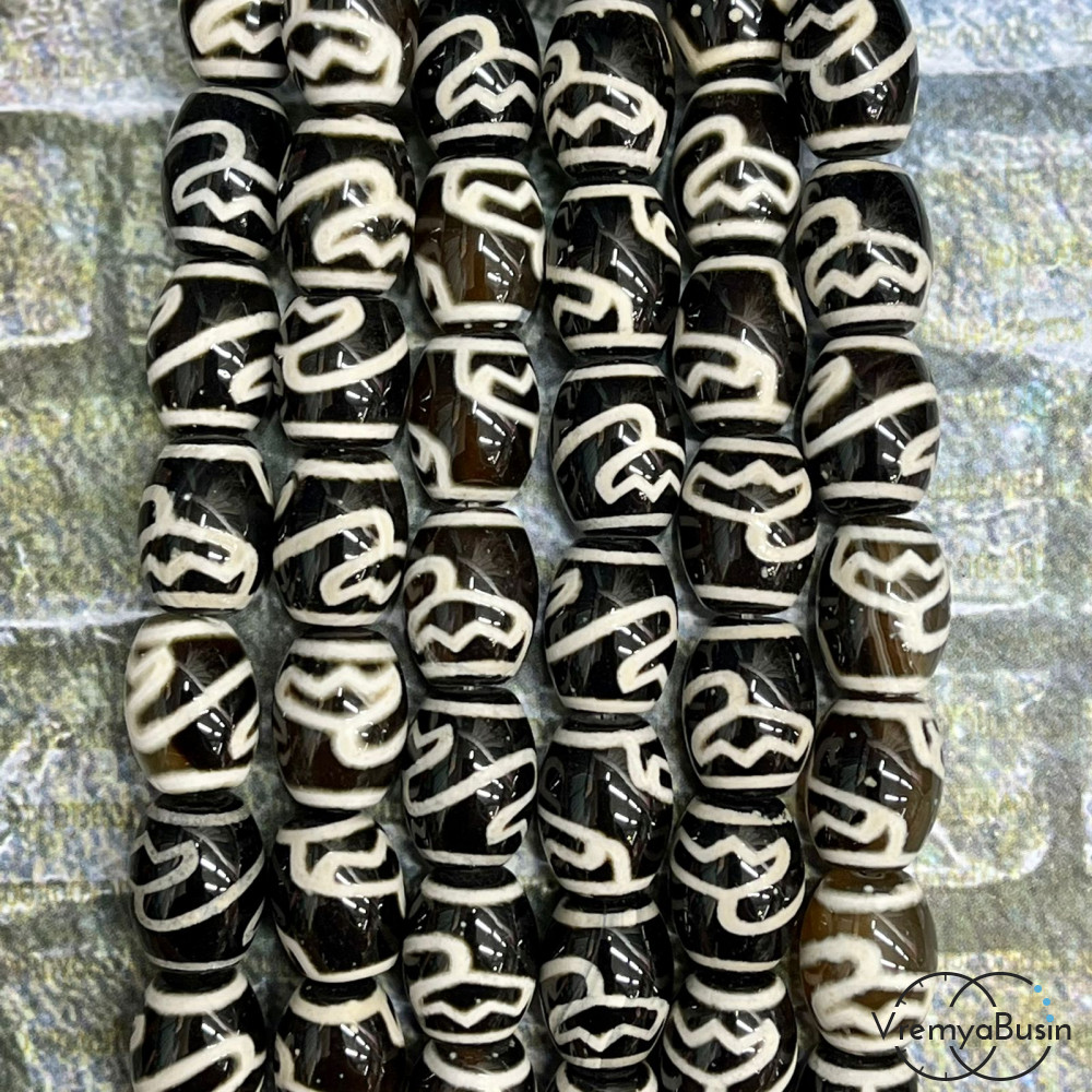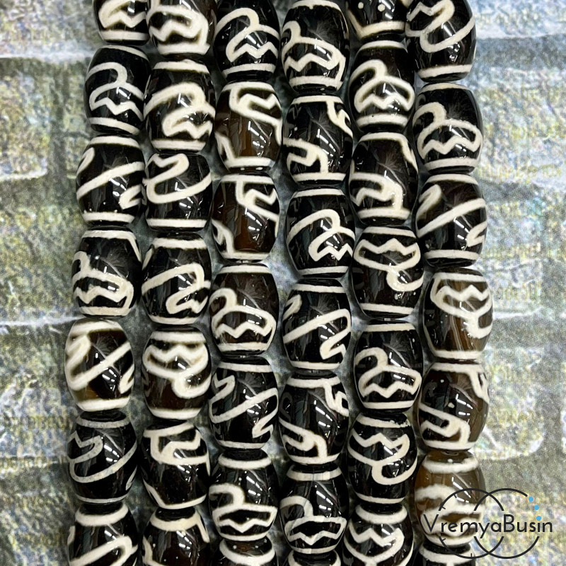 • Бусины Дзи из агата, бочонки 10х15 мм (1/2 нити, ок. 12 шт.)
