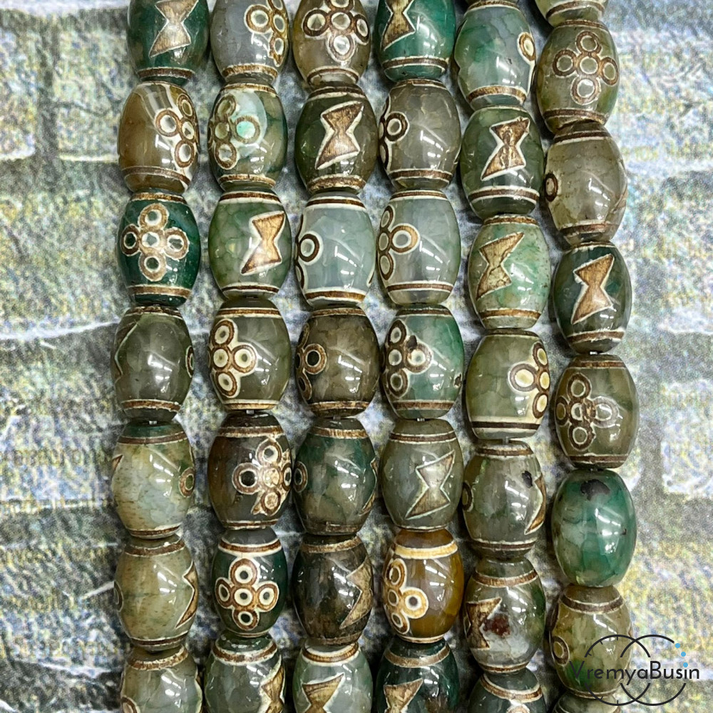 • Бусины Дзи из агата, бочонки 10х15 мм (1/2 нити, ок. 12 шт.)