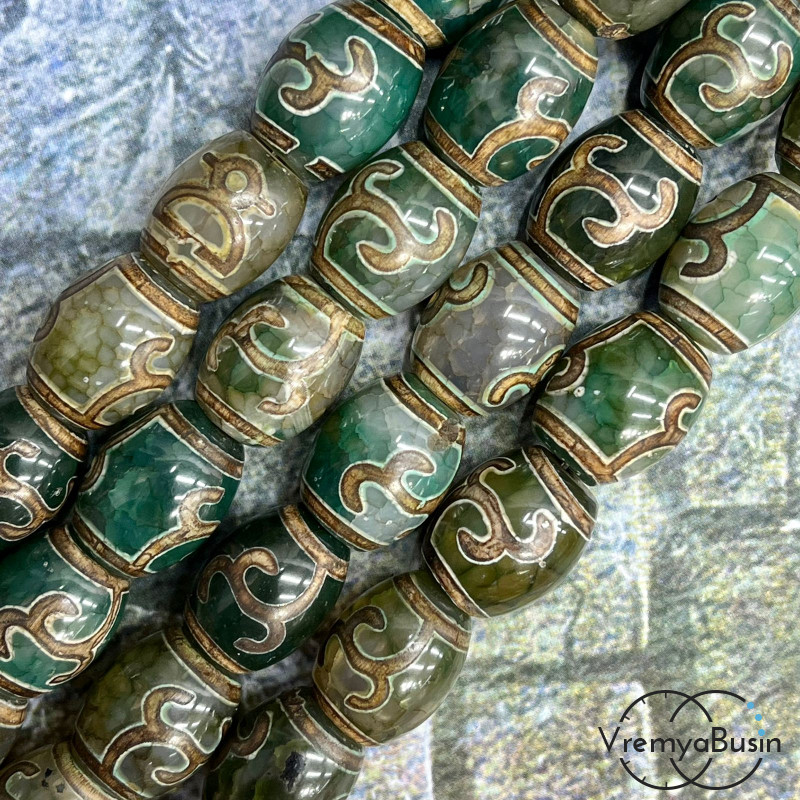 • Бусины Дзи из агата, бочонки 12х16 мм (1/2 нити, ок. 9 шт.)