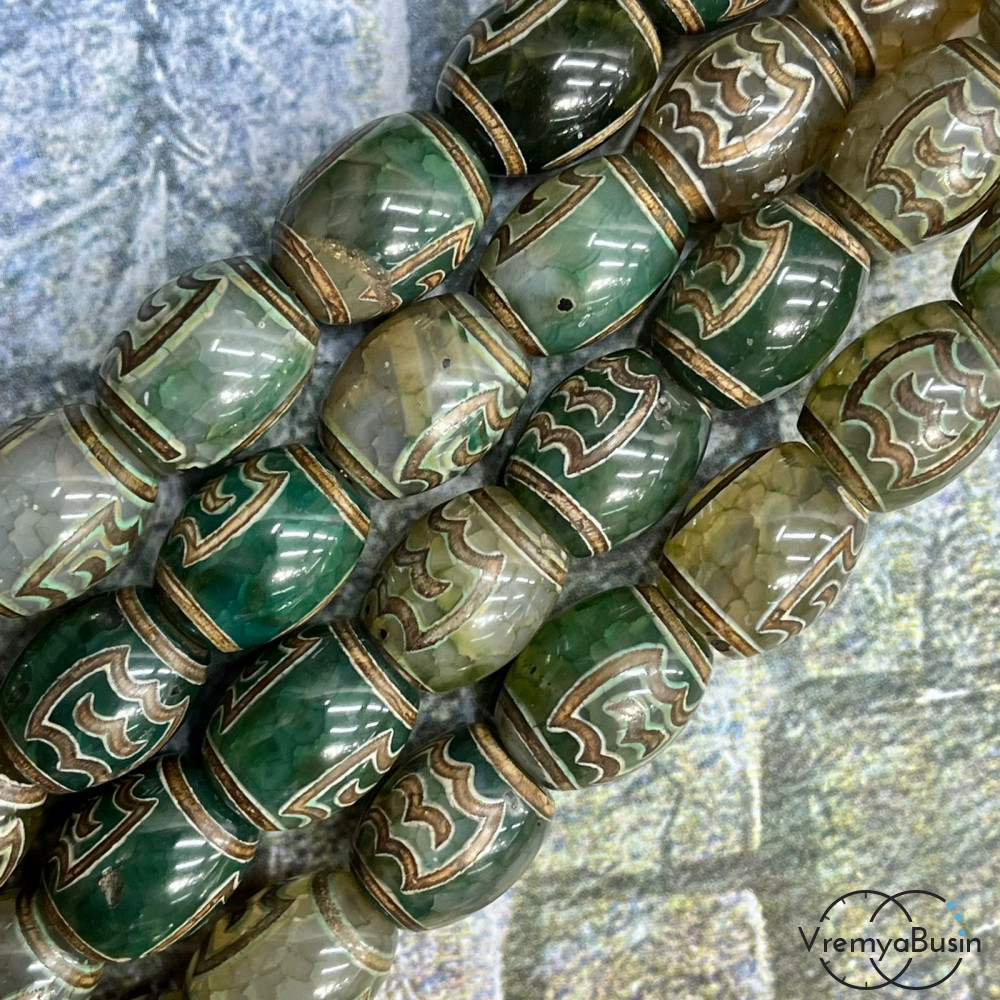 • Бусины Дзи из агата, бочонки 12х16 мм (1/2 нити, ок. 9 шт.)