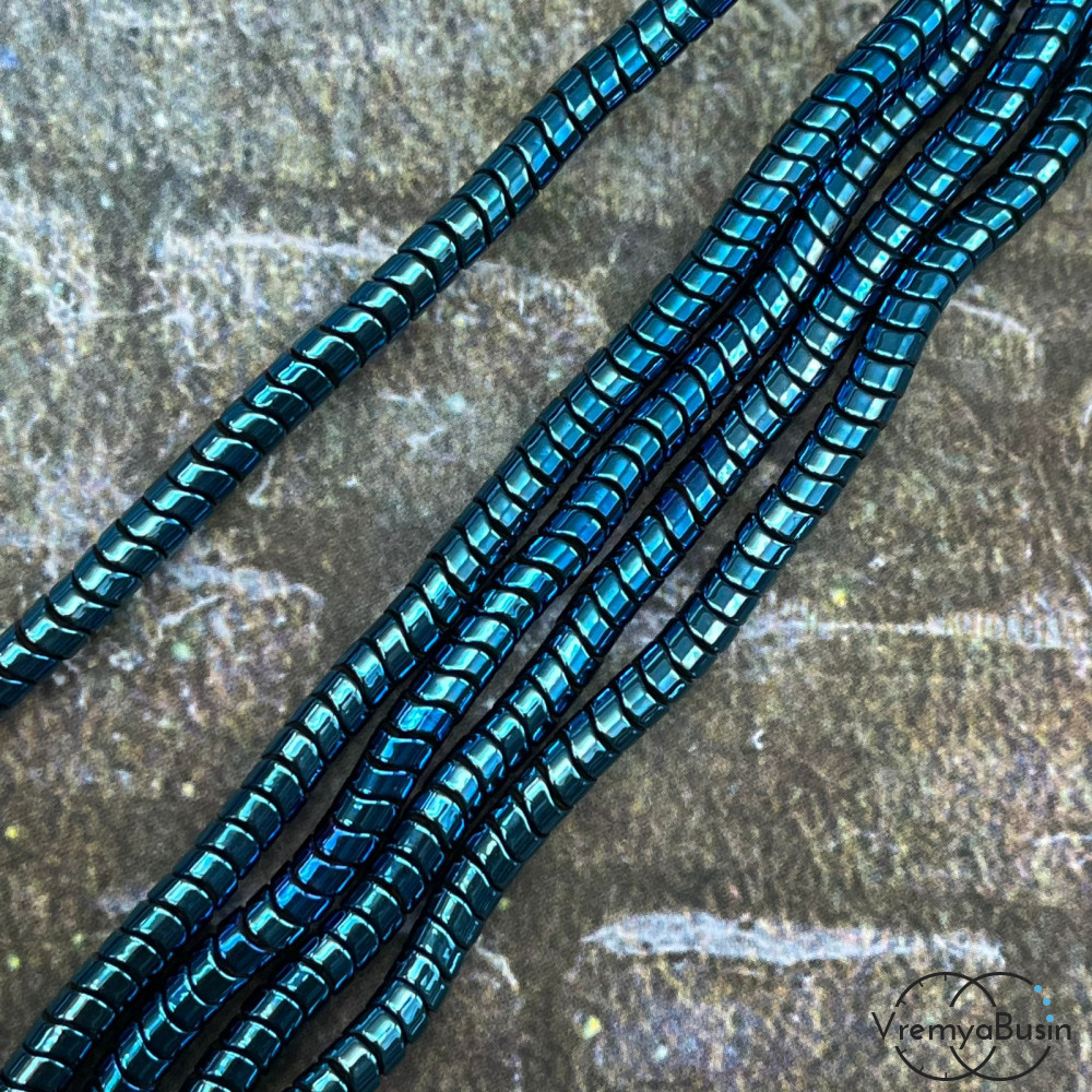 • Гематит, диск изогнутый волной, 2х4 мм, цв. СИНИЙ  (нить, ок. 180  шт.)