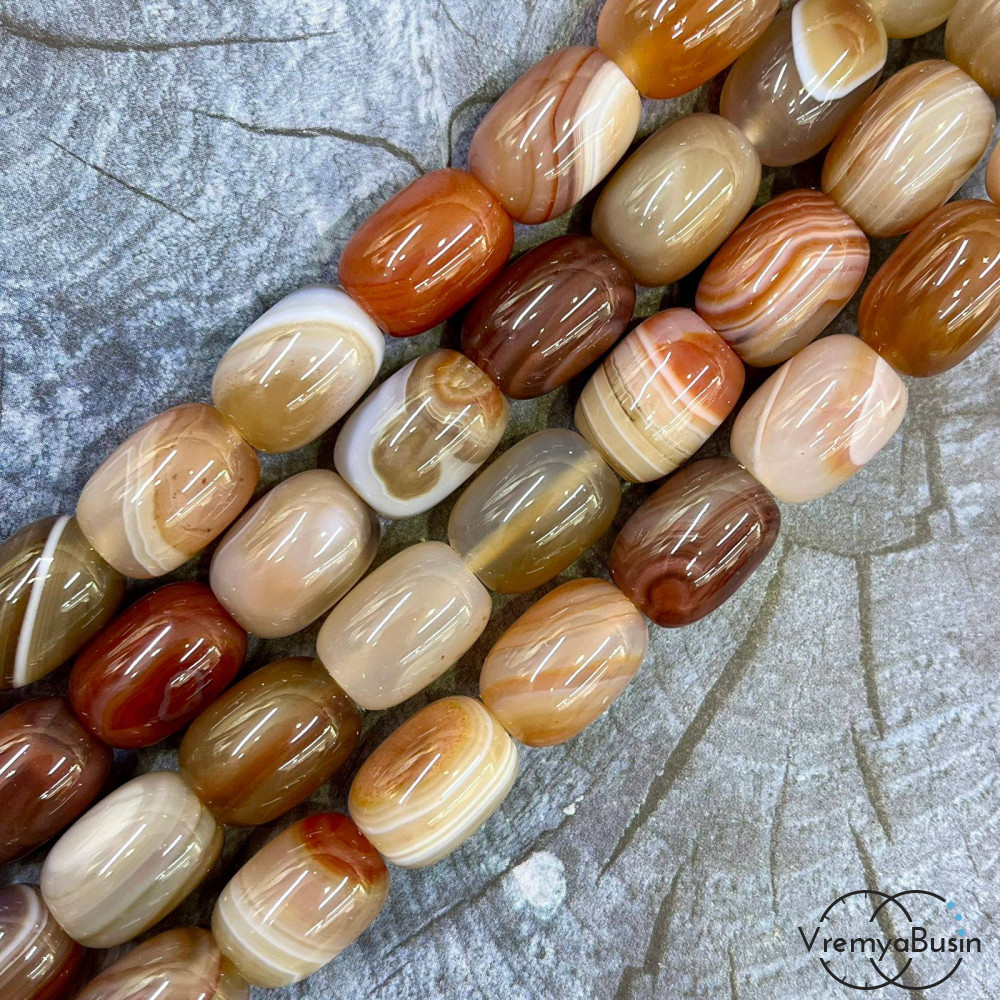 • Агат тонированный, гладкий бочонок 13х18 мм (1/2 нити, ок. 11 шт.)