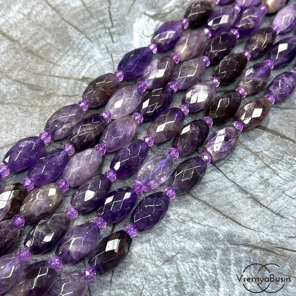 • Аметист, бочонок граненый, ок. 10х15 мм (нить, ок. 22 шт.)
