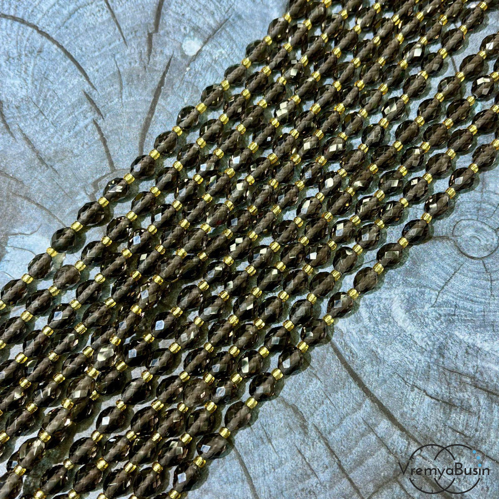 Раухтопаз, дымчатый кварц, бочонок с ювелирной огранкой, ок. 6х8 мм (нить, ок. 38 шт.)