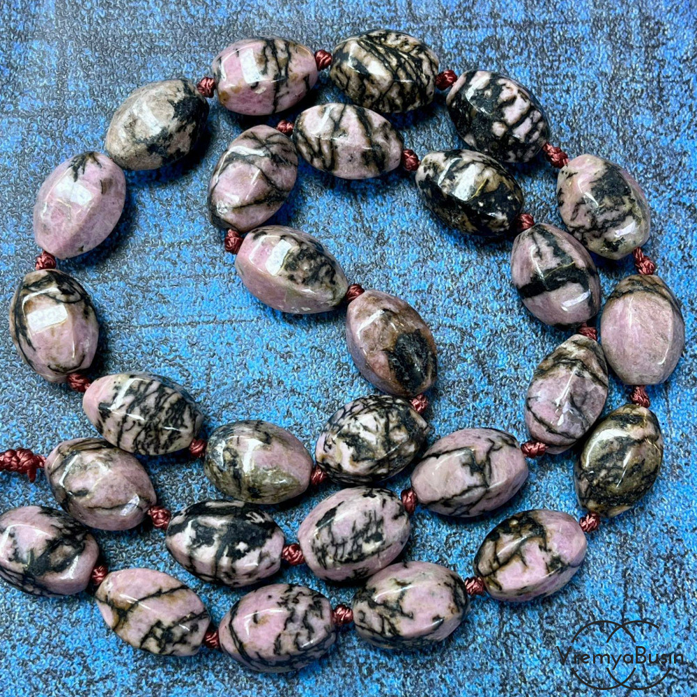 • Родонит, бочонок с гранями, 14х10 мм (1/2 нити, ок. 13 шт.)