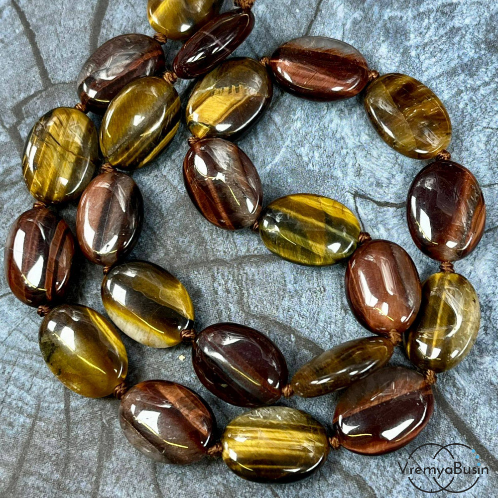 • Тигрово-бычий глаз, овал плоский 13х18мм (1/2 нити, ок. 11 шт.)