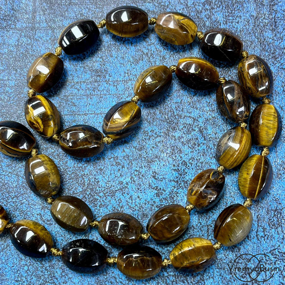• Тигровый глаз, бочонок с гранями, 14х10 мм (1/2 нити, ок. 13 шт.)