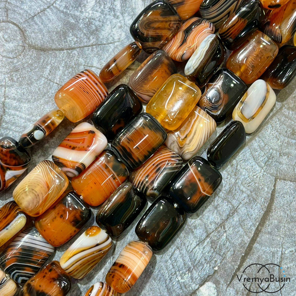 • Агат тонированный, прямоугольник плоский 13х18 мм (1/2 нити, ок. 11 шт.)