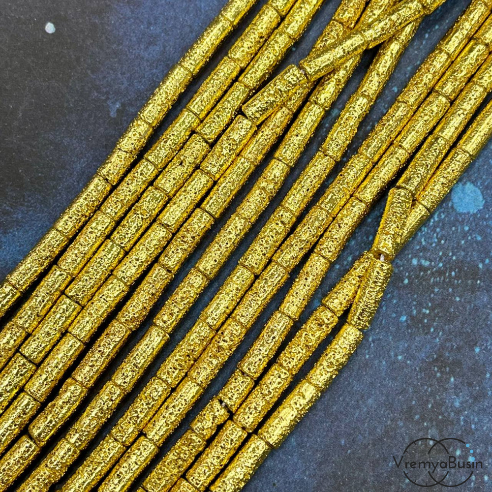 Гематит с имит. лавы, трубочка гладкая ок. 4х14 мм, цв. яркое золото (нить, ок. 28 шт.)