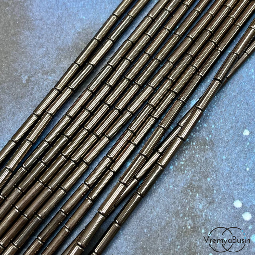 Гематит, трубочка гладкая ок. 4х14 мм, цв. коричневый (нить, ок. 28 шт.)