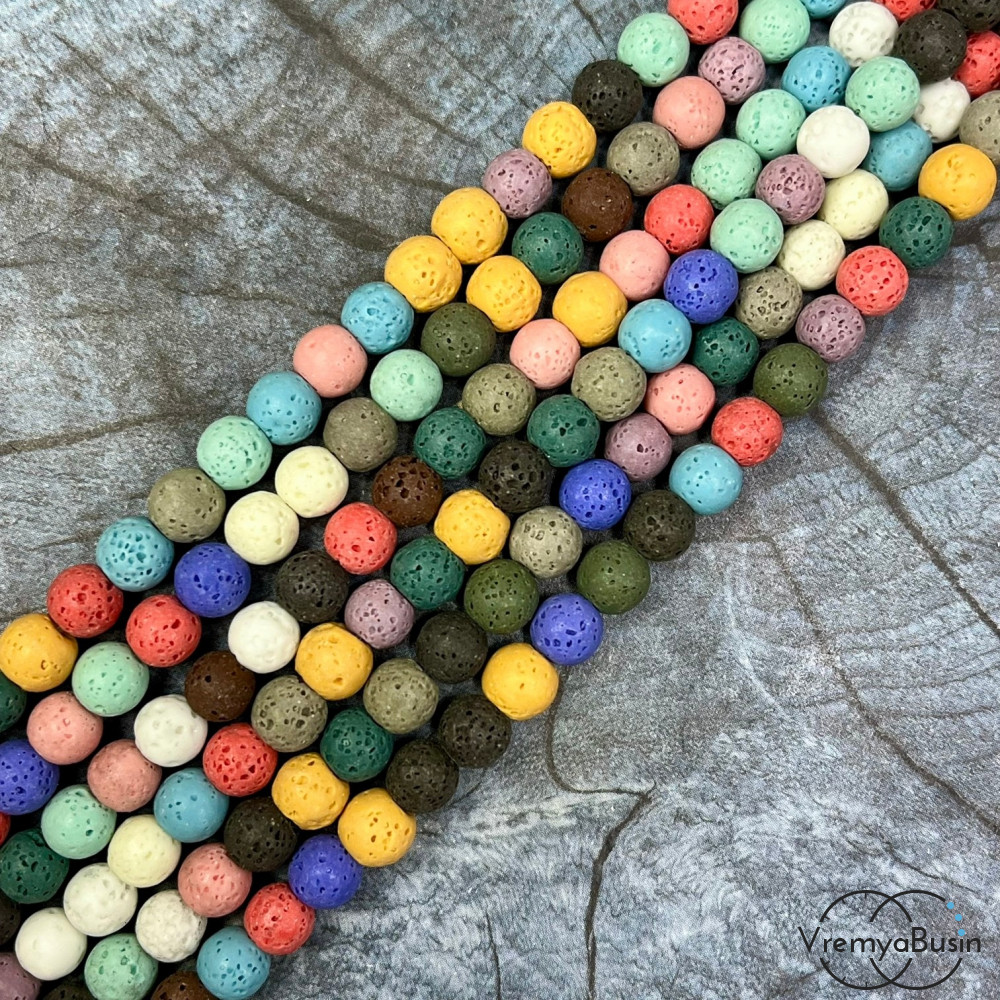• Лава тонир., бусины  шарики, ок. 6 мм,     цв.      микс   (нить, ок.  65     шт.)