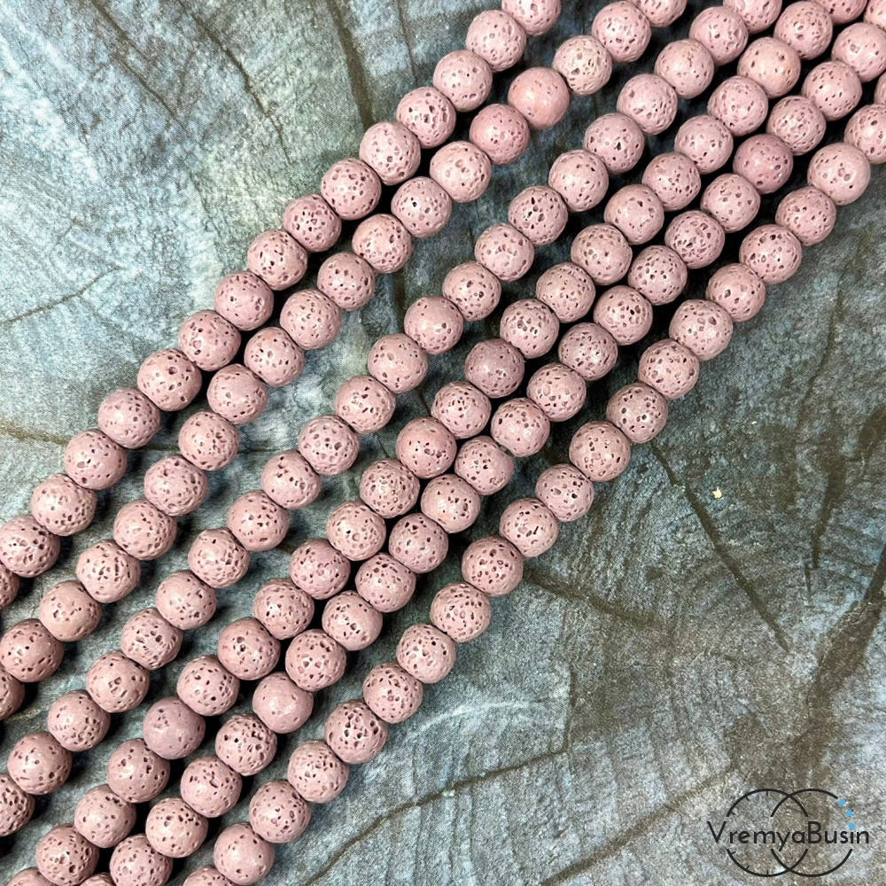Лава тонир., бусины шарики, ок. 6 мм, цв. пыльная роза (нить, ок. 65 шт.)