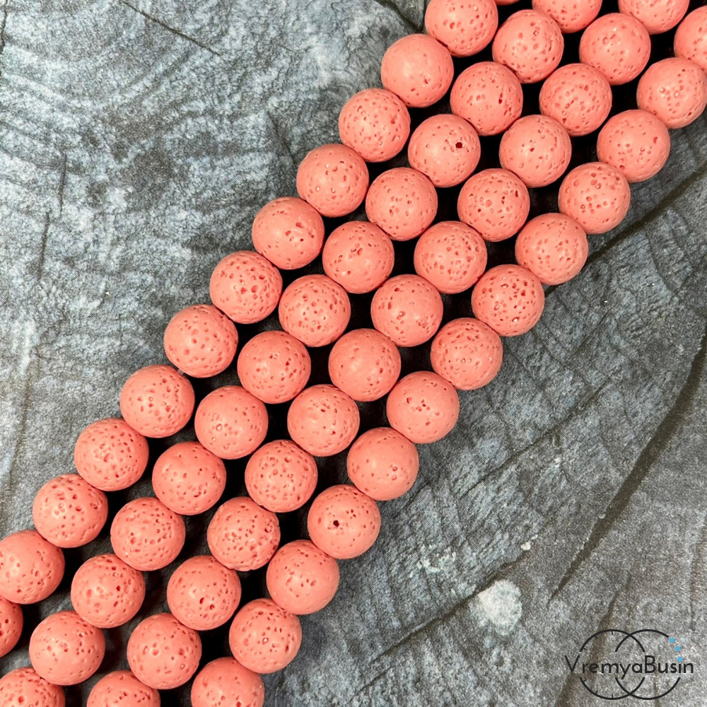 Лава тонир., бусины шарики, ок. 8 мм, цв. лососевый (нить, ок. 48 шт.)