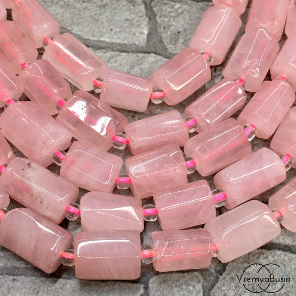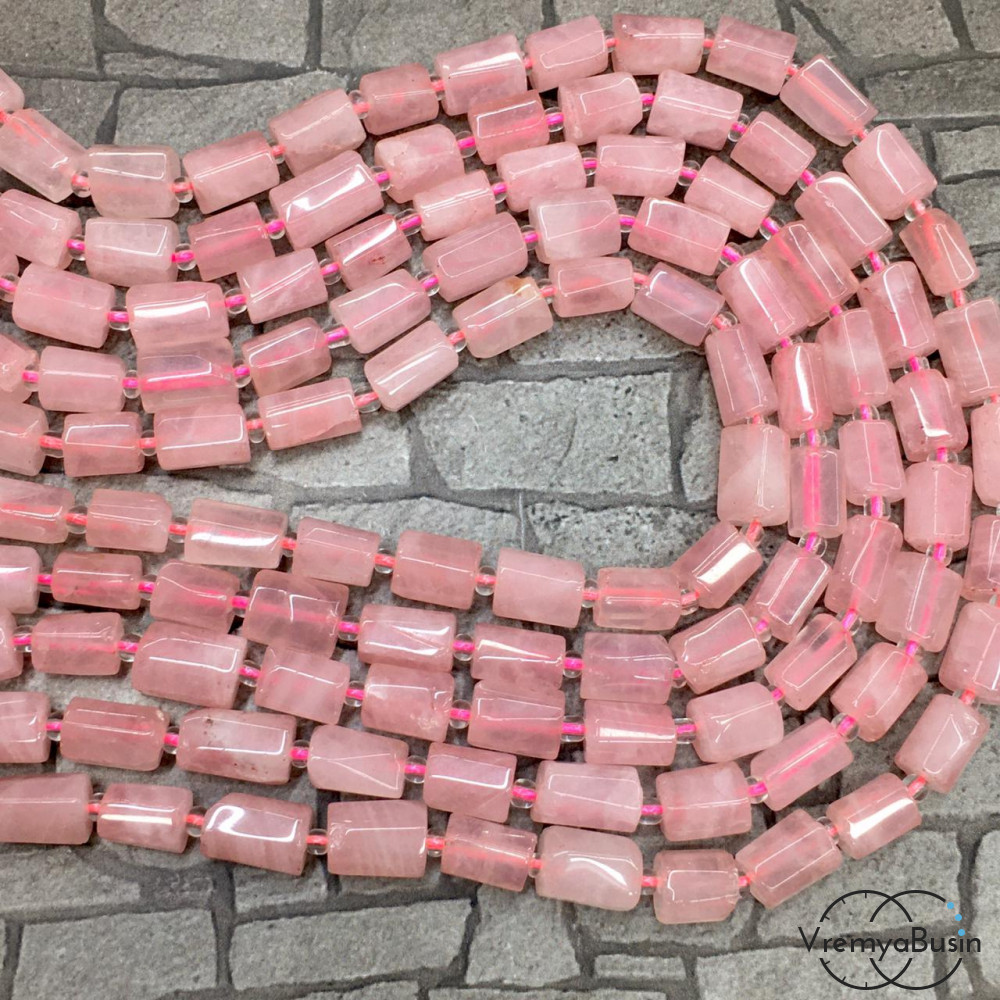Розовый кварц натур., трубочка с гранями, ок. 6х8 мм (нить, ок. 35 шт.)