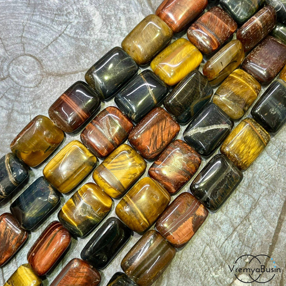 • Соколино-тигрово-бычий глаз, прямоугольник плоский 13х18 мм (1/2 нити, ок. 10 шт.)