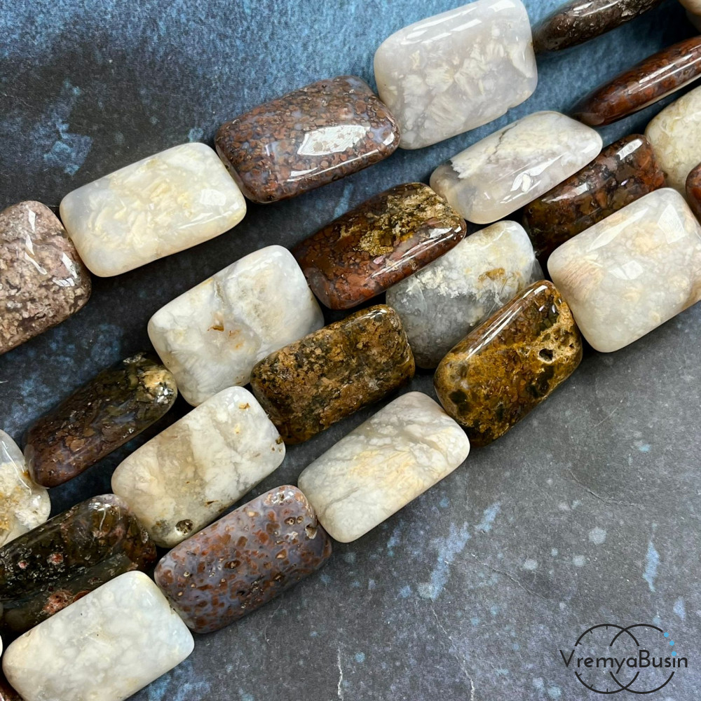 Яшма, бусины плоские прямоугольники ок. 18х25 мм (нить, ок. 16 шт.)