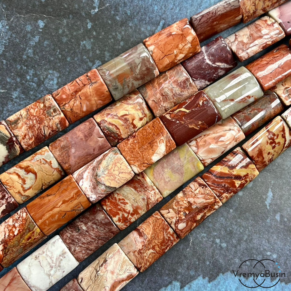 Яшма, бусины плоские прямоугольники ок. 12х20 мм (нить, ок. 20 шт.)