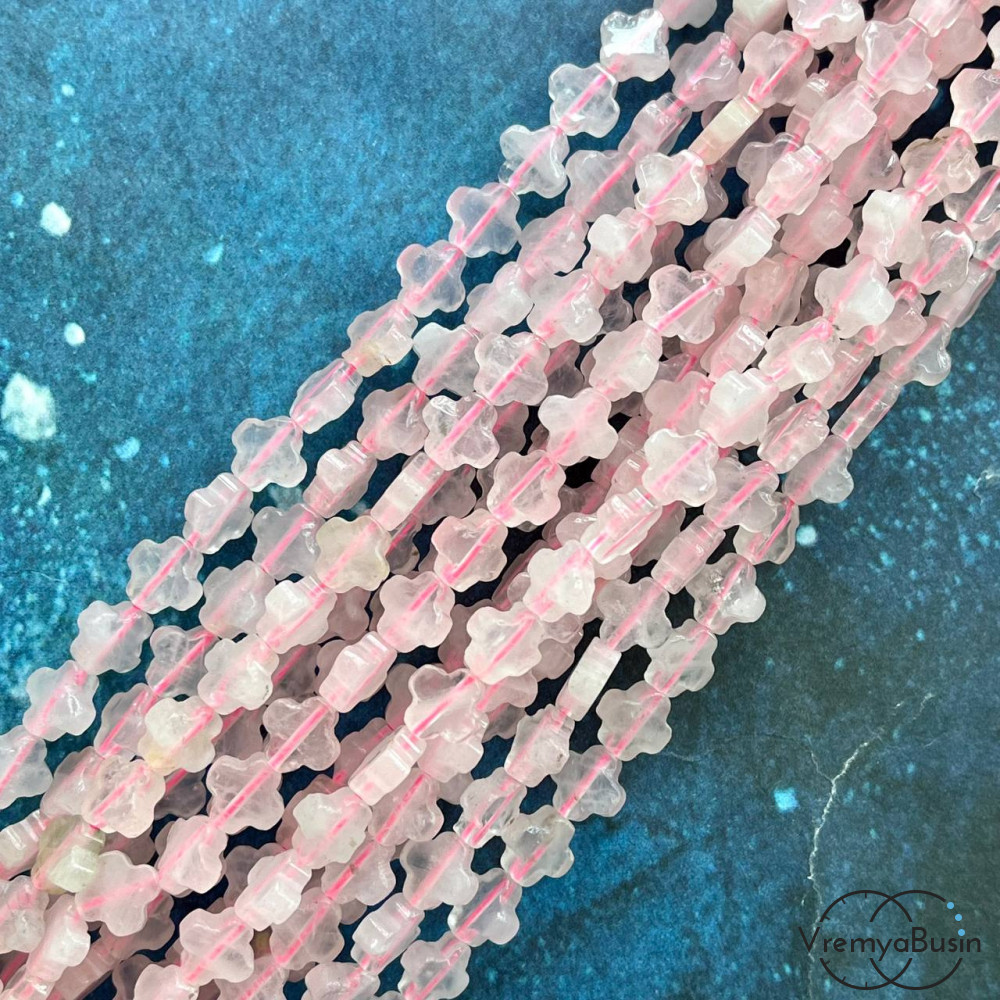 • Розовый кварц, гладкие бусины, клевер 8х3 мм (1/2 нити, ок. 24 шт.)
