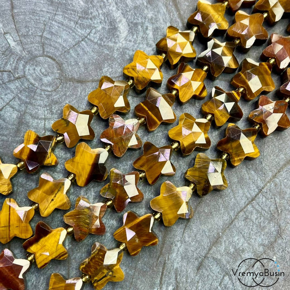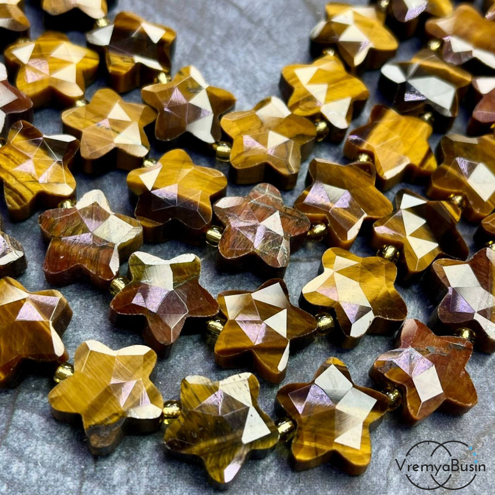Тигровый глаз, бусины граненые звезды ок. 14х6 мм (1/2 нити, ок. 13 шт.)