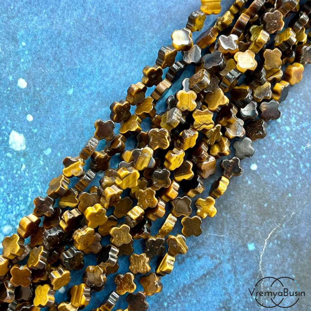 • Тигровый глаз, гладкие бусины, клевер 8х3 мм (1/2 нити, ок. 24 шт.)