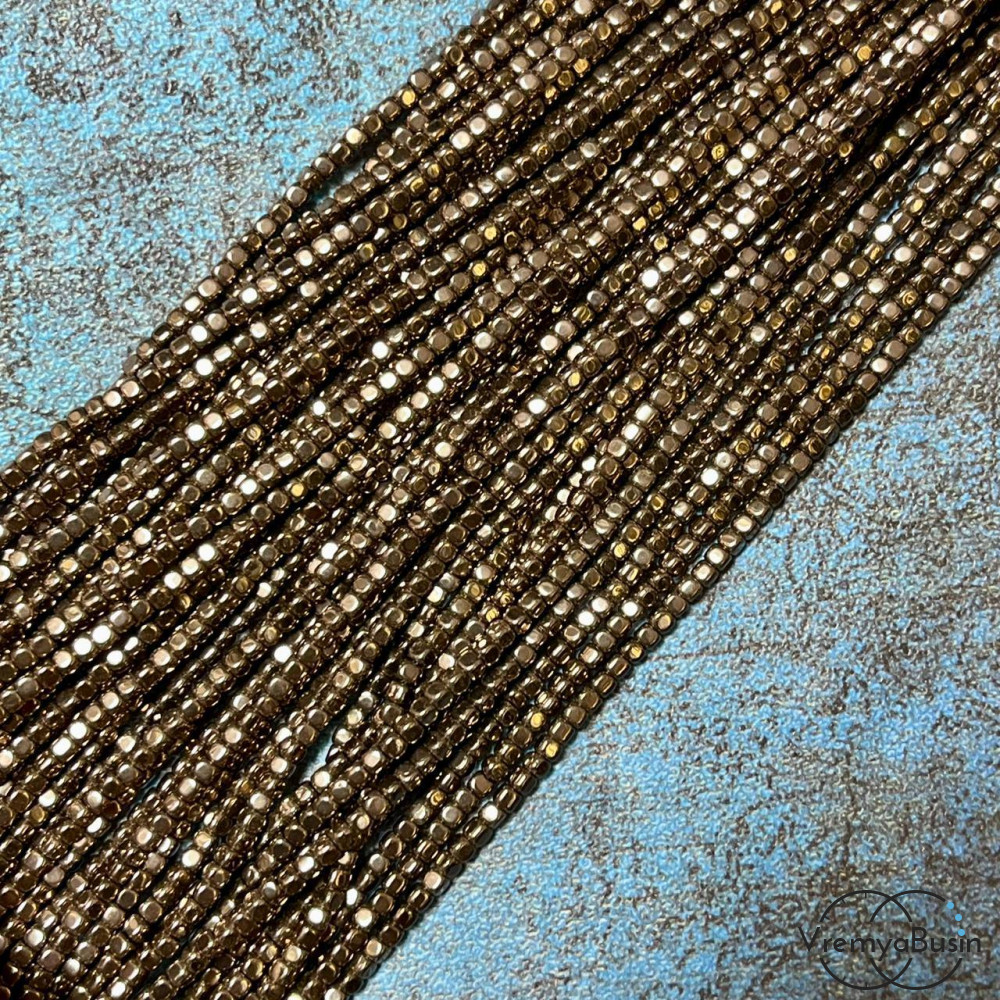 Гематит, округлый кубик 2х2 мм, цв. коричневый (нить, ок. 200 шт.)