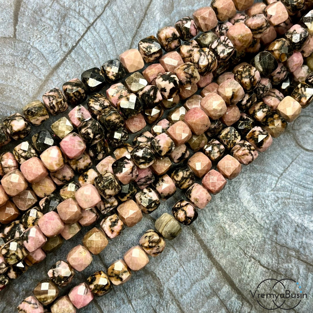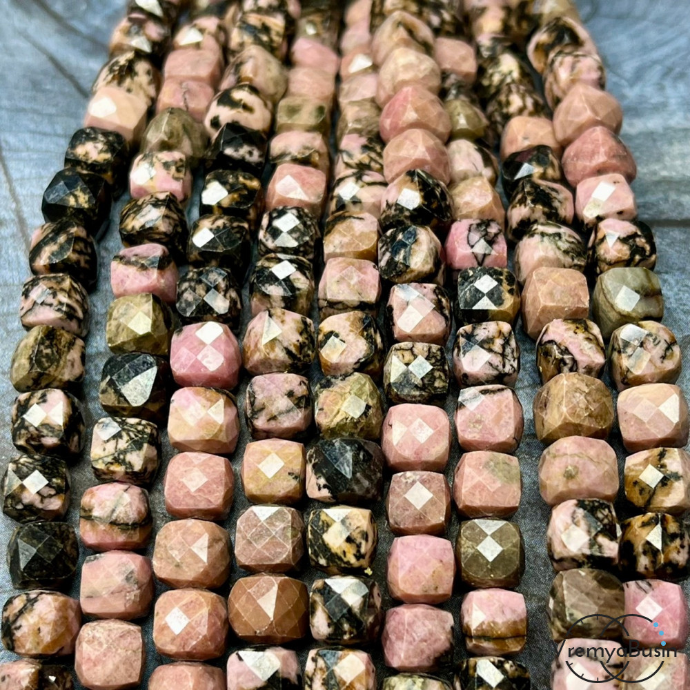 Родонит, кубик ок. 7.5 мм с микроогранкой ювелирн.качества (1/2 нити, ок. 25 шт.)
