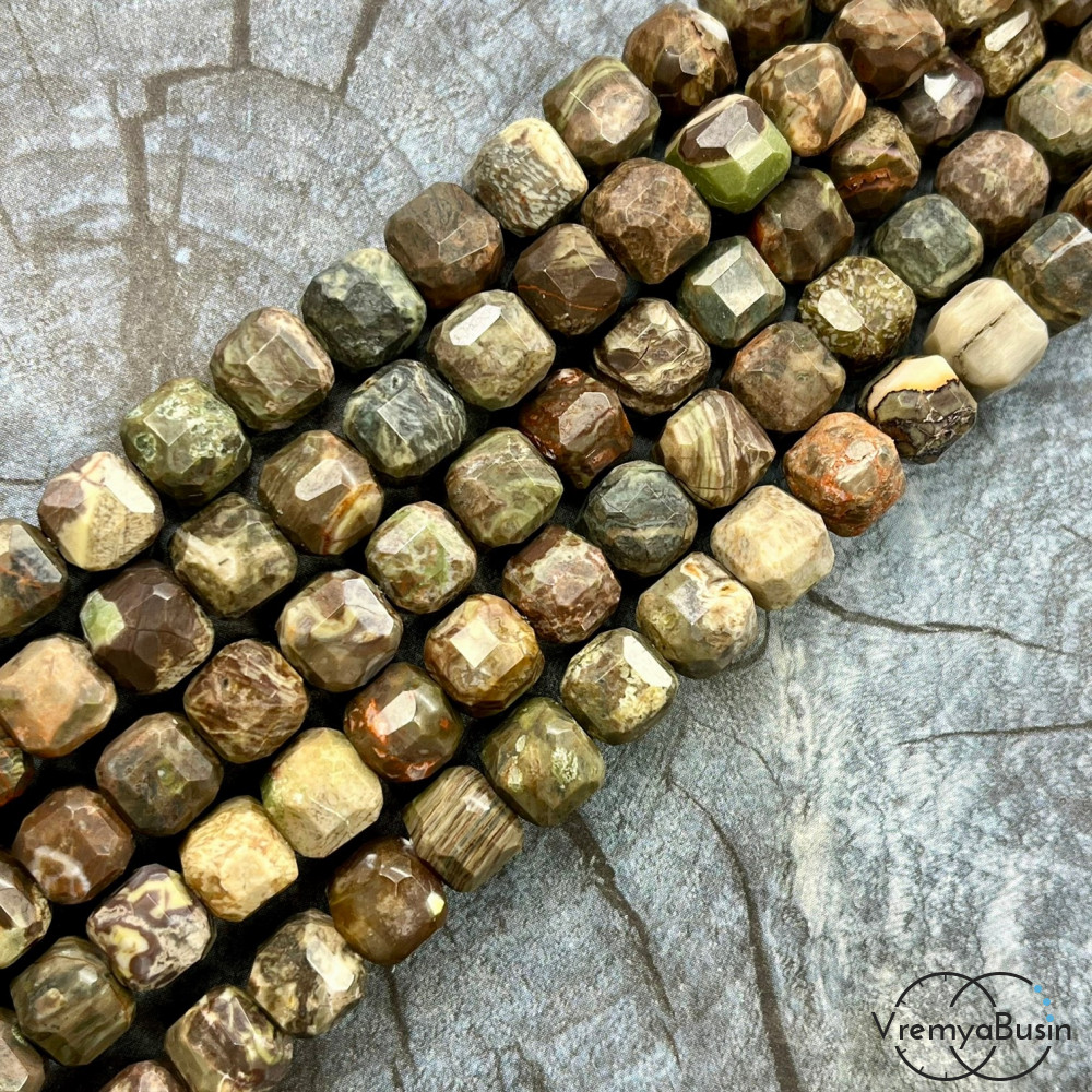 • Яшма, кубик ок. 8.5 мм с микроогранкой ювелирн.качества (1/2 нити, ок. 20 шт.)