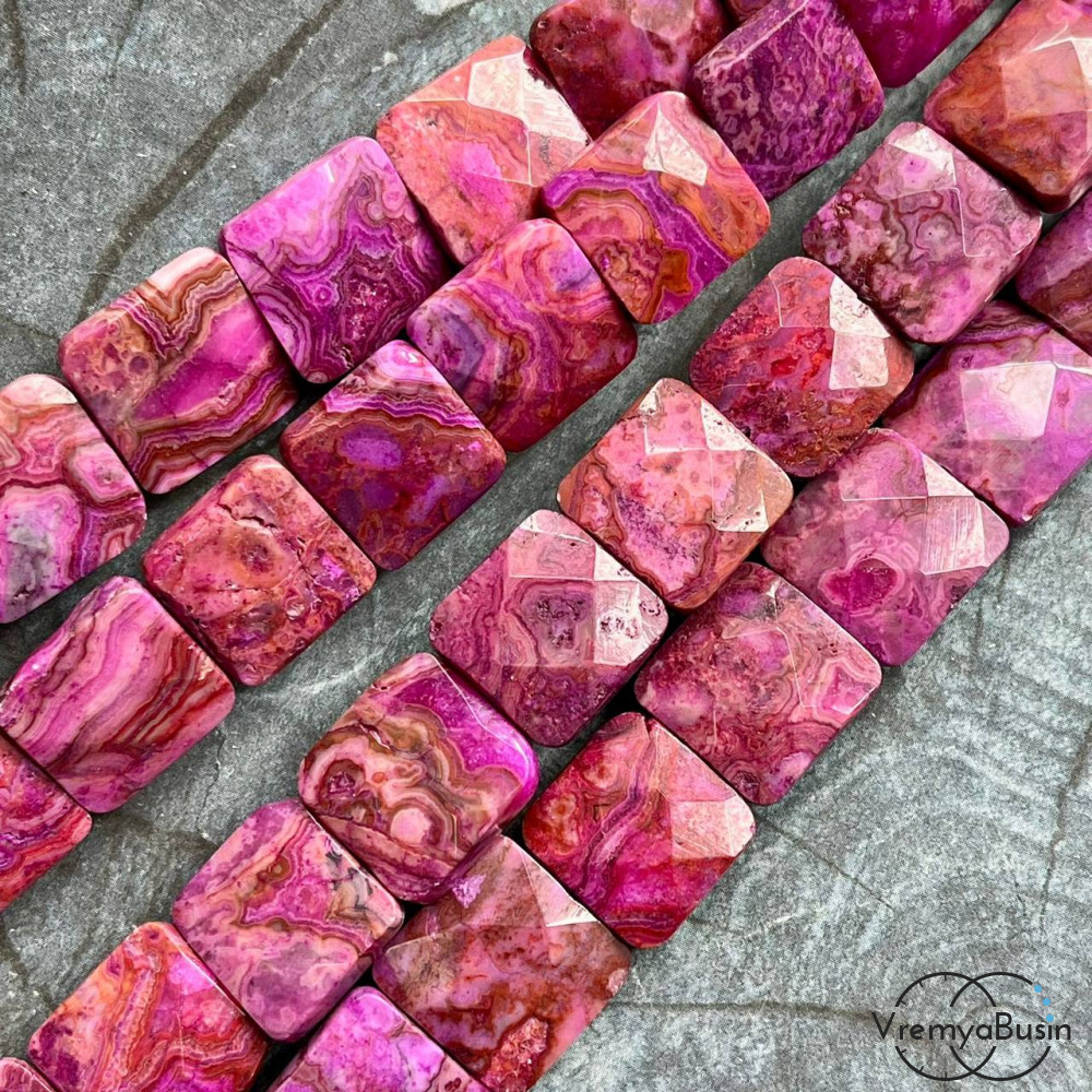 Яшма тонир., плоские граненые квадратики, ок. 16х16х5 мм (нить, ок. 24 шт.)