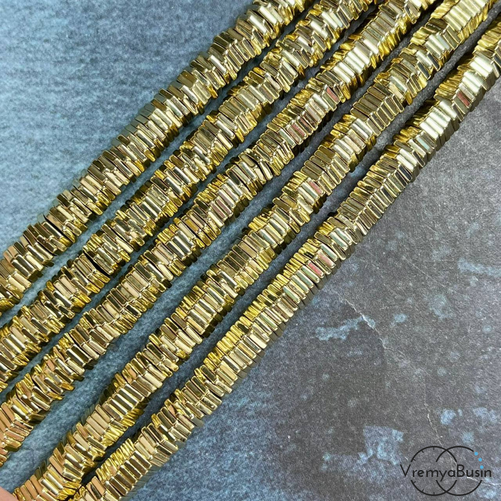 • Гематит, чипс шестигранник 1х6 мм, цв. СВЕТЛОЕ ЗОЛОТО (1/2 нити, ок. 160 шт.)