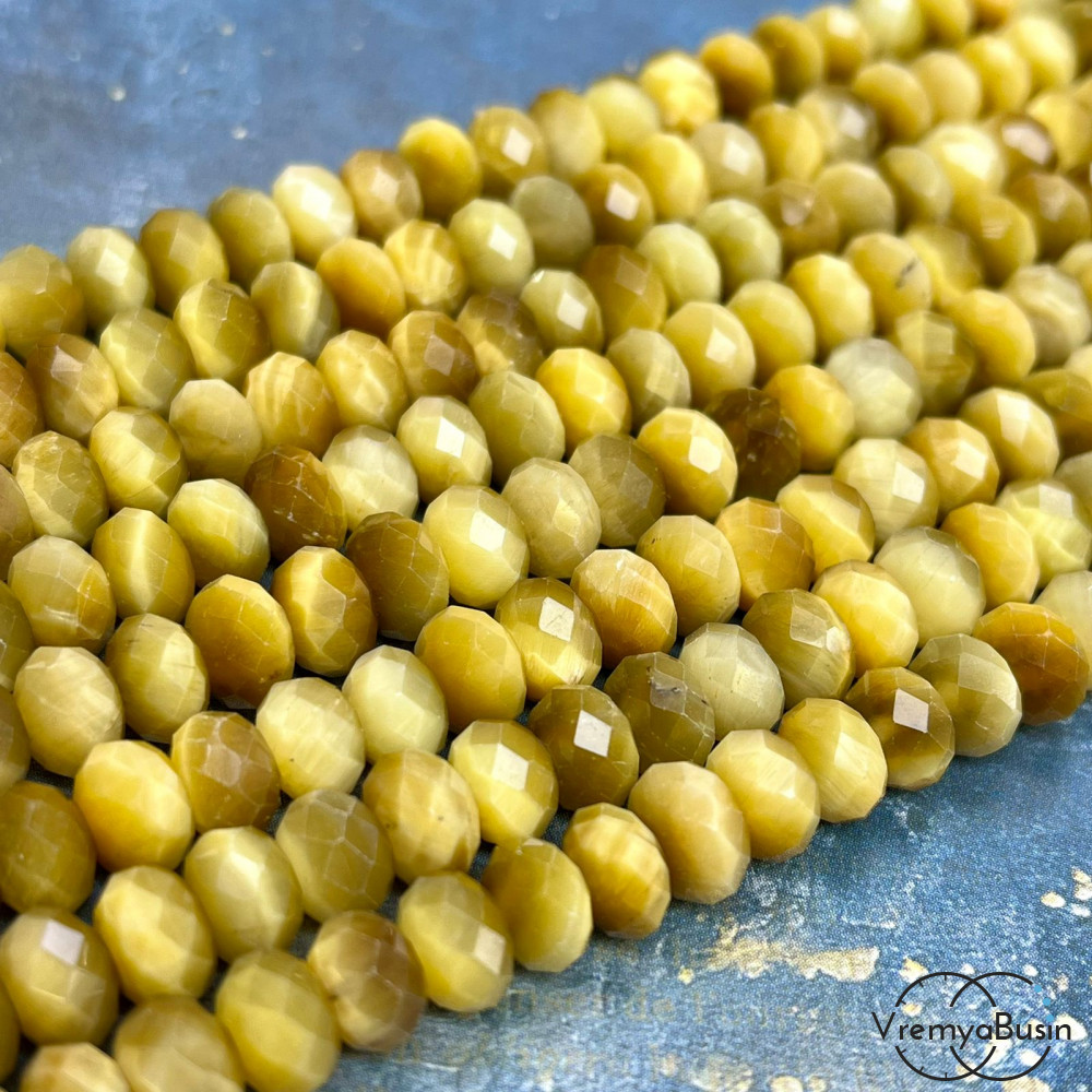 • Тигровый глаз натур., тонир. цв. , рондель граненый 6х8 мм (1/2 нити, ок. 35 шт.)