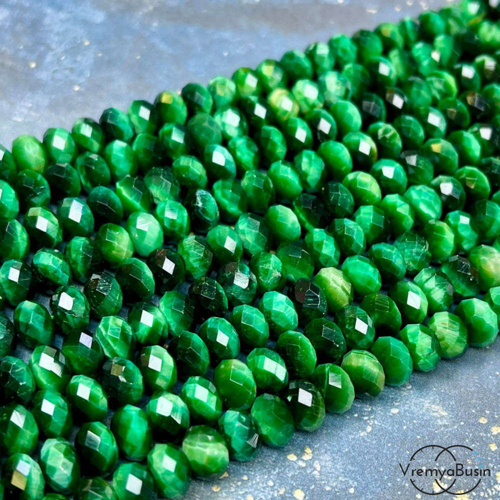 • Тигровый глаз натур., тонир. цв. , рондель граненый 6х8 мм (1/2 нити, ок. 35 шт.)