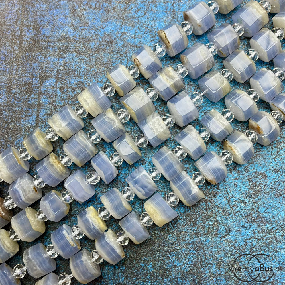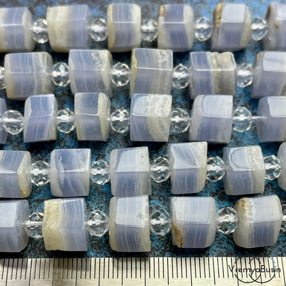 Сапфирин, голубой агат, шестигранные шайбы ок. 11х13 (нить, ок. 25-27 шт.)