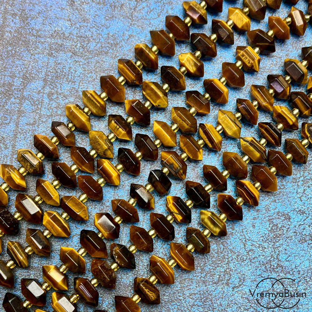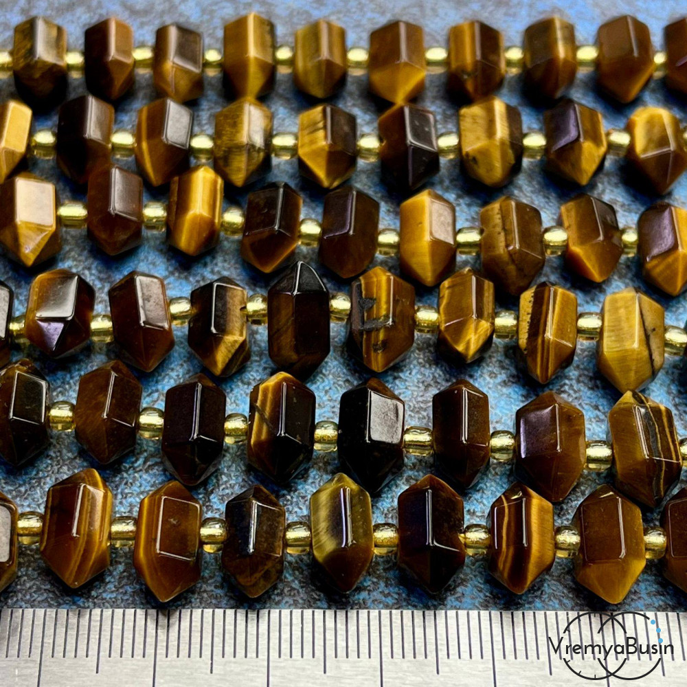Тигровый глаз, бусины с огранкой кристалл, ок. 12х6х6 мм (1/2 нити, ок. 22 шт.)
