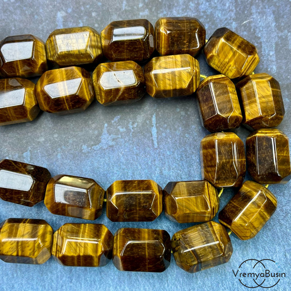 Тигровый глаз, крупные овальные граненые бусины, ок. 20х15 мм (1/2 нити, ок. 8 шт.)