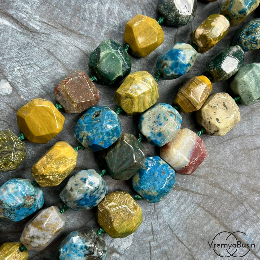 • Яшма, крупные граненые бусины ок. 20х20х12 мм (нить, 18 шт.)