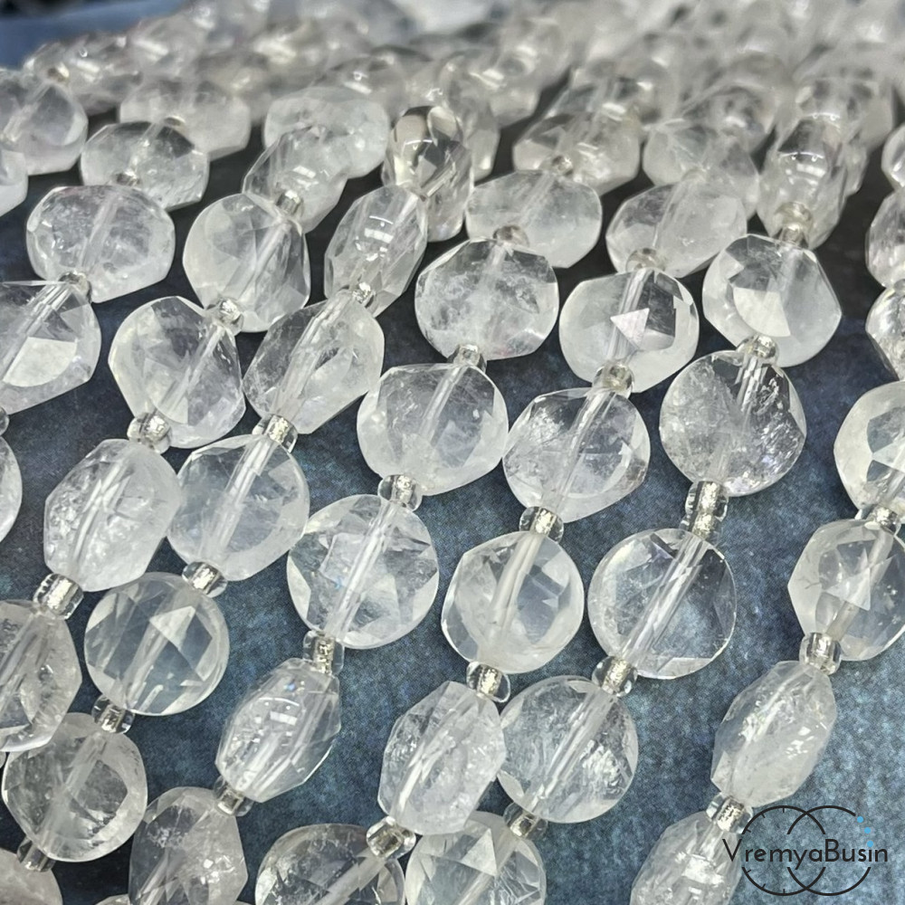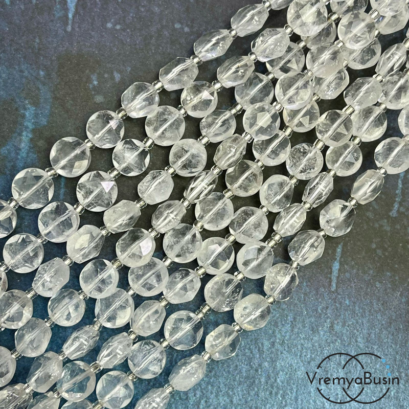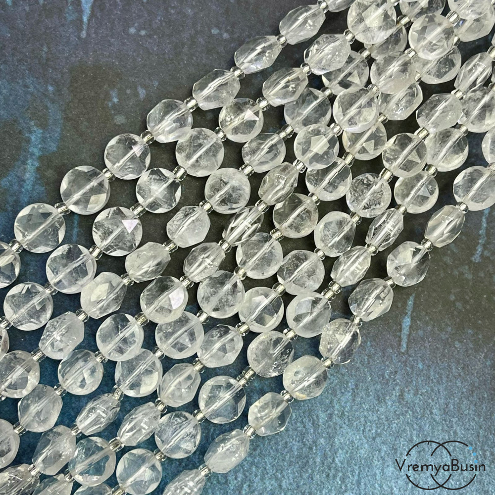 Горный хрусталь, таблетка граненая 10х6 мм (1/2 нити, ок. 16 шт.)