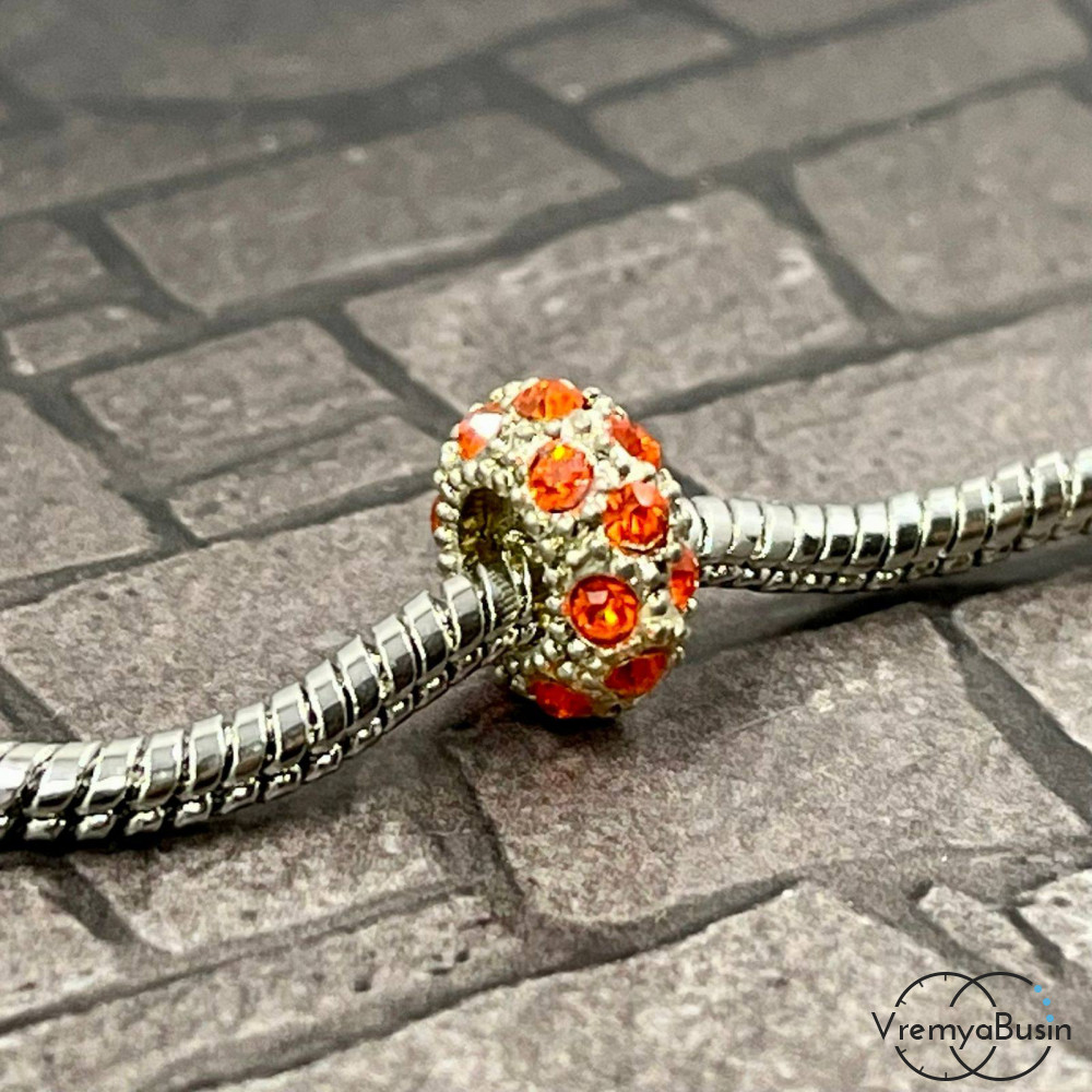 Бусина металлическая со стразами, 11х5 мм, цв. оранжевый (1 шт.)