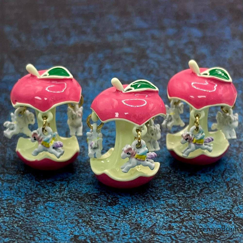 • Бусина с эмалью "Яблоко-карусель", ок. 24х17 мм, из латуни с позолотой (1 шт.)