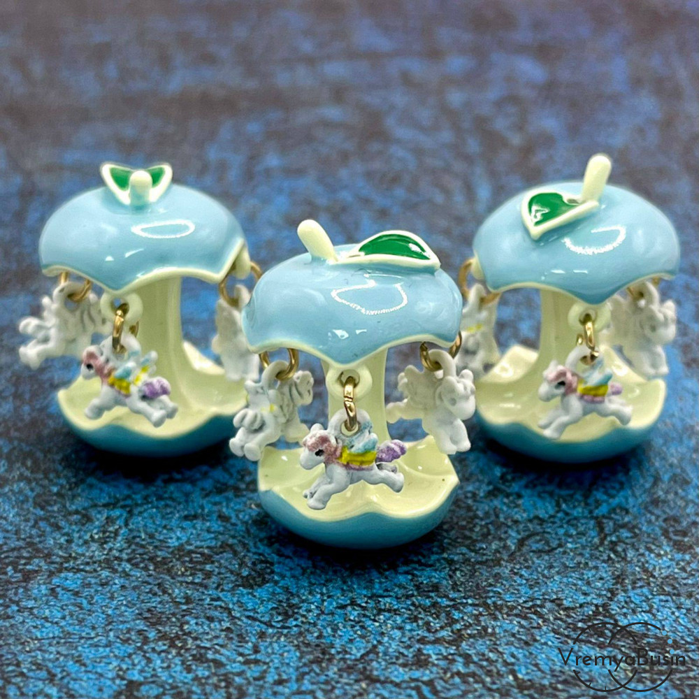 • Бусина с эмалью "Яблоко-карусель", ок. 24х17 мм, из латуни с позолотой (1 шт.)