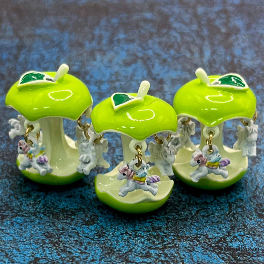 • Бусина с эмалью "Яблоко-карусель", ок. 24х17 мм, из латуни с позолотой (1 шт.)