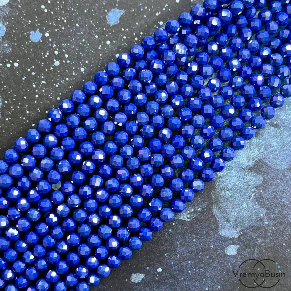 Фианит, матовый шарик 4 мм с микроогранкой, цв. синий (нить, ок. 40 см.)
