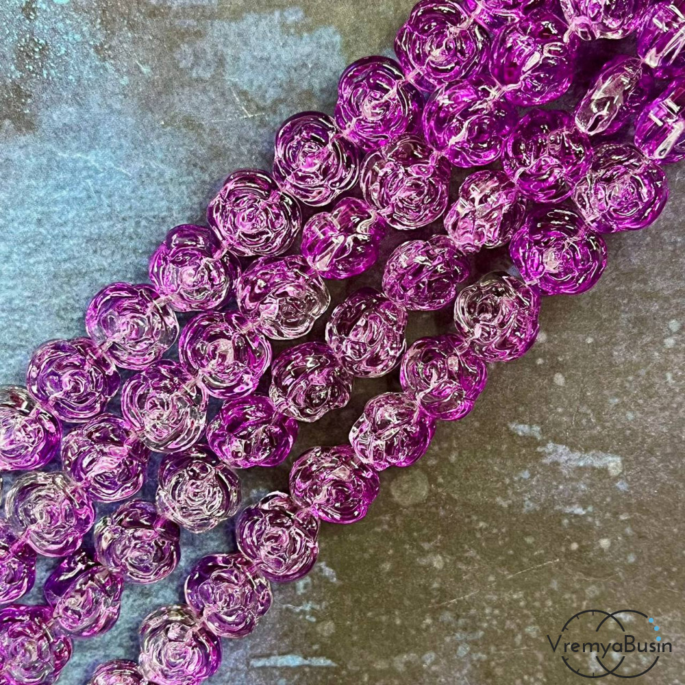 • Бусины из стекла «Розы», 14х12х8 мм (1/2 нити, ок.  30   шт.)