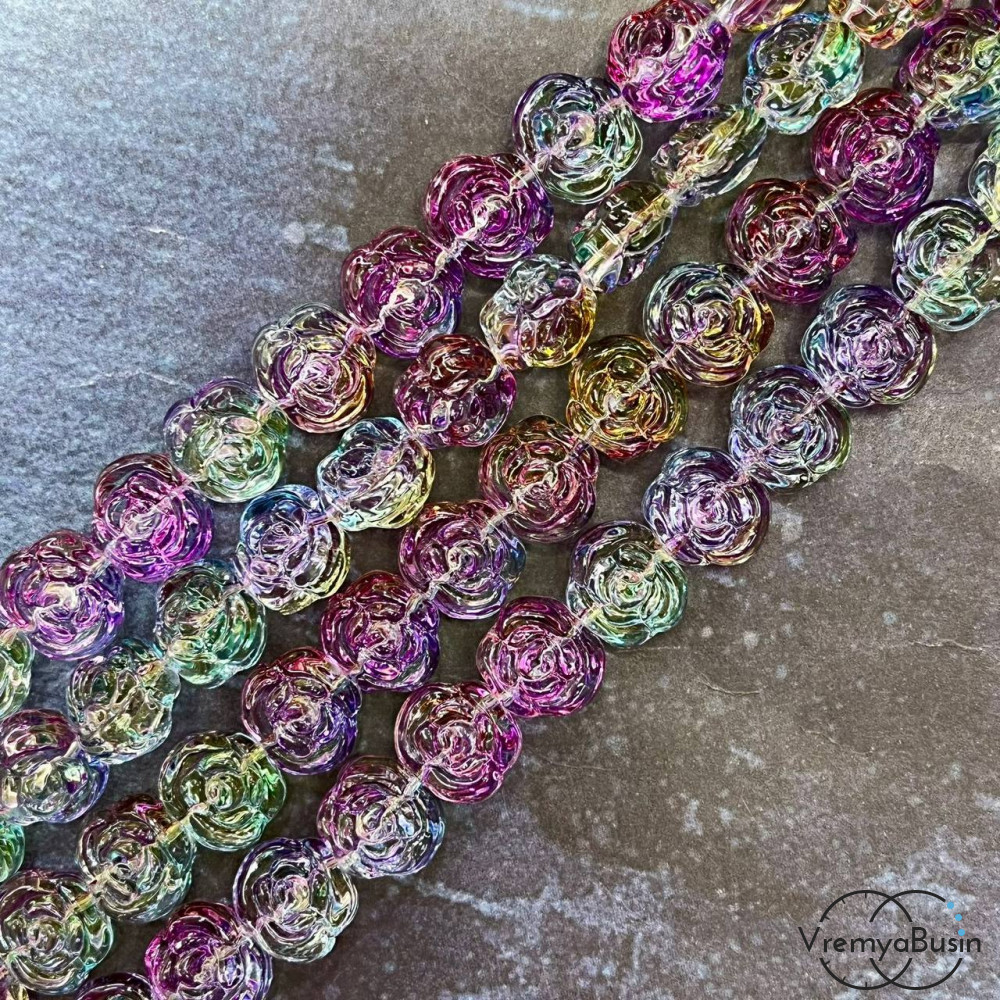 Бусины из стекла «Розы», 14х12х8 мм (1/2 нити, ок. 30 шт.)