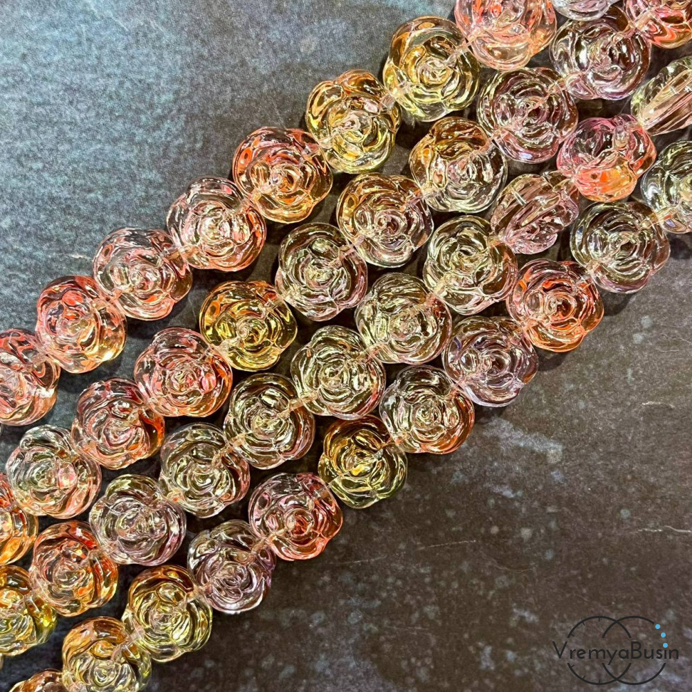 Бусины из стекла «Розы», 14х12х8 мм (1/2 нити, ок. 30 шт.)
