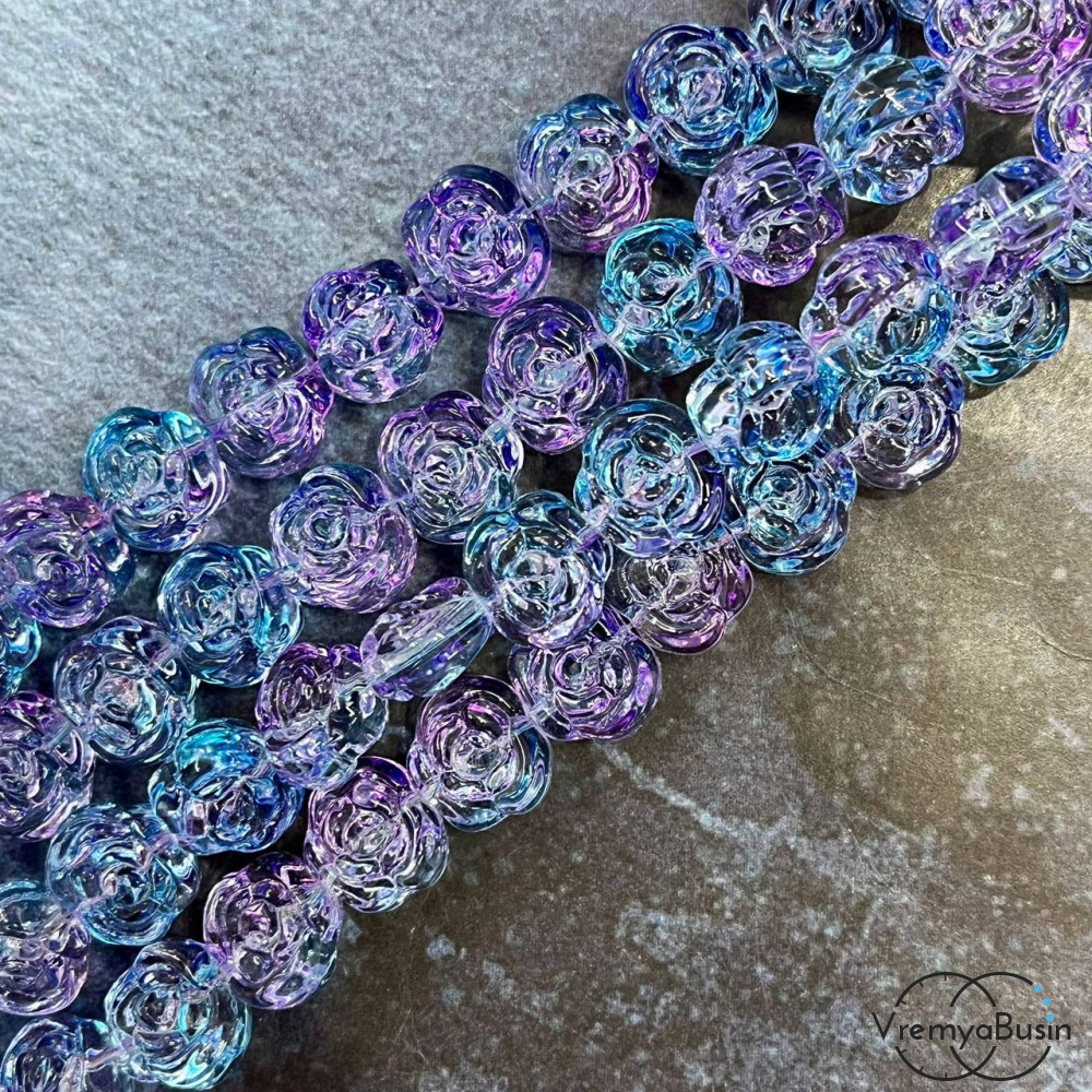 • Бусины из стекла «Розы», 14х12х8 мм (1/2 нити, ок.  30   шт.)