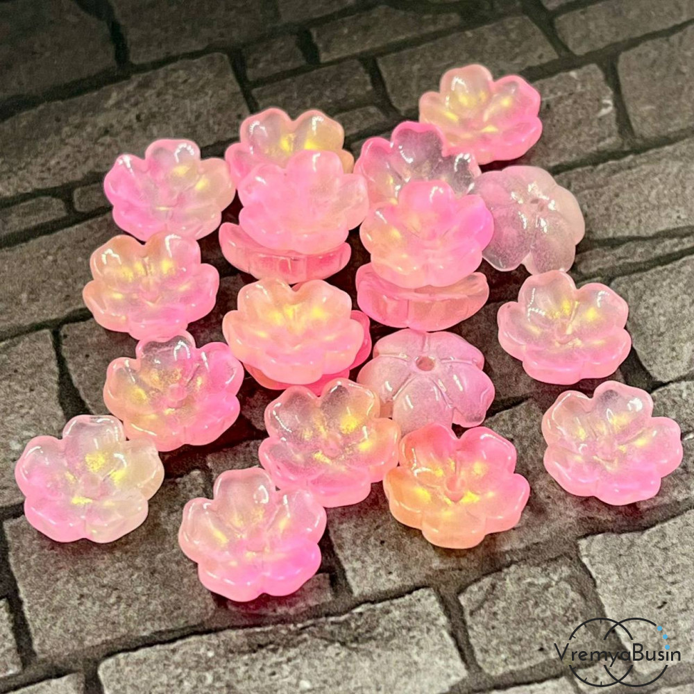 • Цветочек, бусина из стекла,   13 мм  (1 шт.)