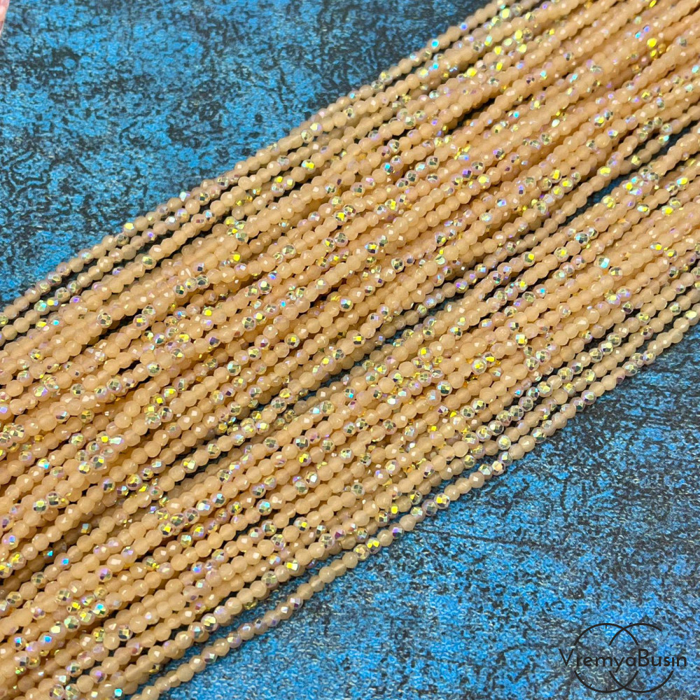 Бусины хрустальные кристаллики, шарик граненый 2 мм (нить, ок. 38 см.)